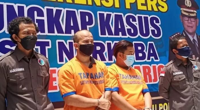Terkini.id,Sidoarjo - Satresnarkoba Sidoarjo bekuk peracik dan pengedar Narkotika Warga Asing asal Palestina dan warga asal Ujung Pandang Sulawesi, Kamis 18 Februari 2021.